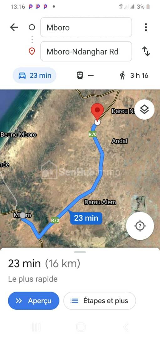 11 hectares première position a mboro sur la route de diogo. délibération. Nappe phréatique 25 m a 30 .lotissable en parcelle ou poulailler ou verger hectares 3 000 000 f soit 300 f le M2.