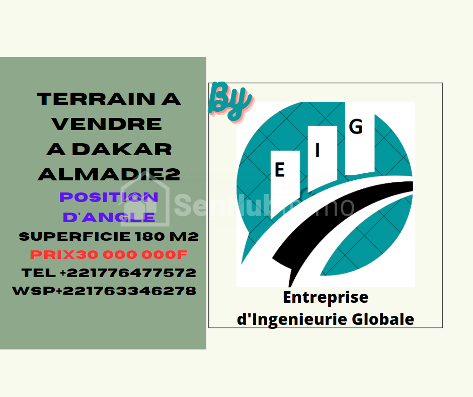 TERRAIN A VENDRE A DAKAR ZAC MBAO ALMADIE 2 SORTIE PEAGE n° 9 TITRE FONCIER POSITION D'ANGLE SUPERFICIE 180m²