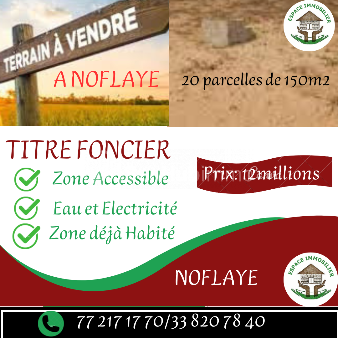 Espace Immobilier met à la disposition de son clientèle des terrains à vendre( lot de 20 parcelles ) à NOFLAYE à un prix d'acceptabilité défiant toute concurrence Réservez une nouvelle visite gratuite des terrains à site (NOFLAYE) de 150m2 idéal pour tout vos p