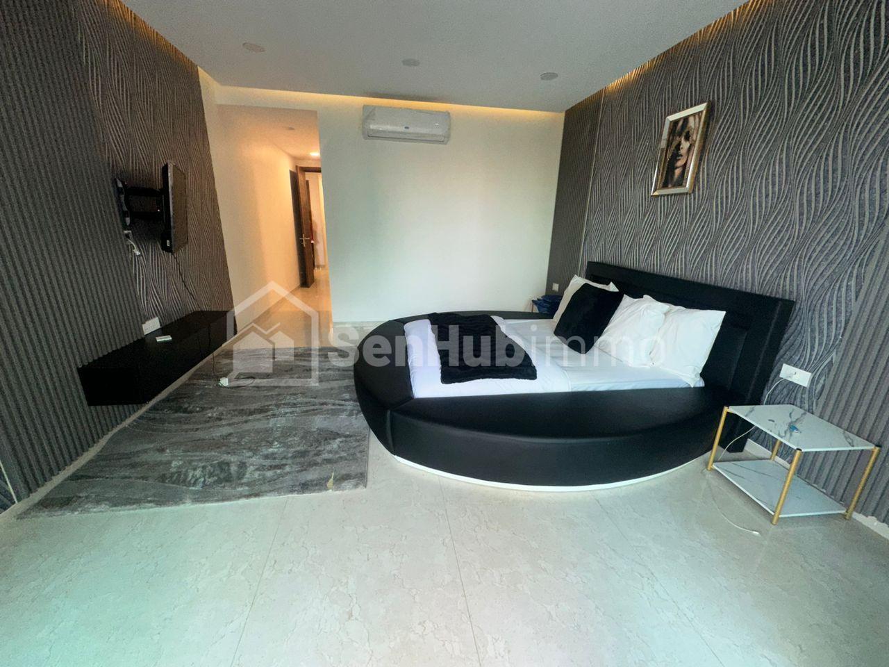 3 chambres avec salle d'eau chacune, un grand salon avec balcon en face de la mer, une belle cuisine moderne, un débarras, une buanderie, une chambre domestique avec salle d’eau, une toilette visiteurs. Toutes les pièces climatisées. Dans une zone calme et beaucoup accessible, pas loin de la mer. Location court séjour: 130 000 FR nuitée
