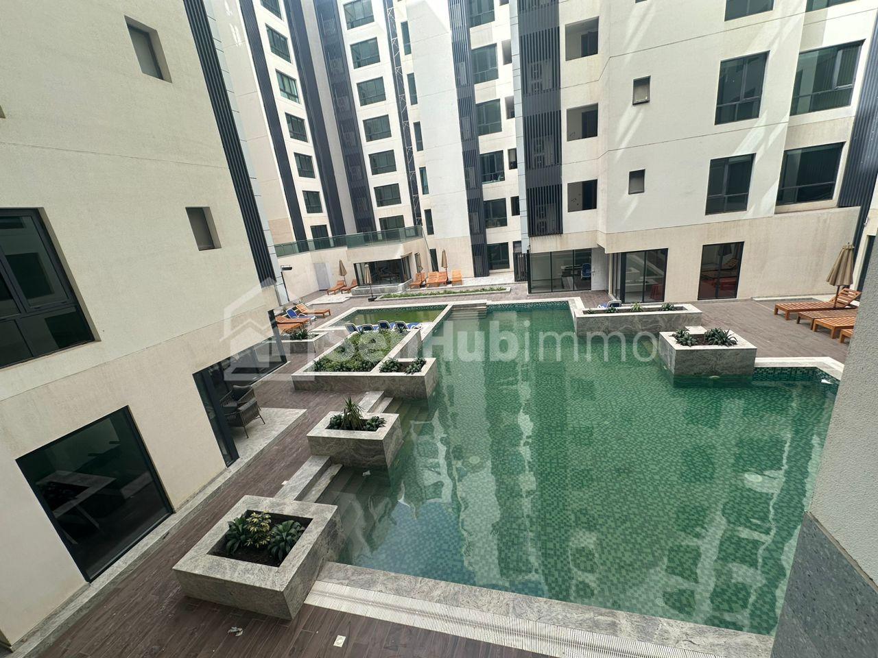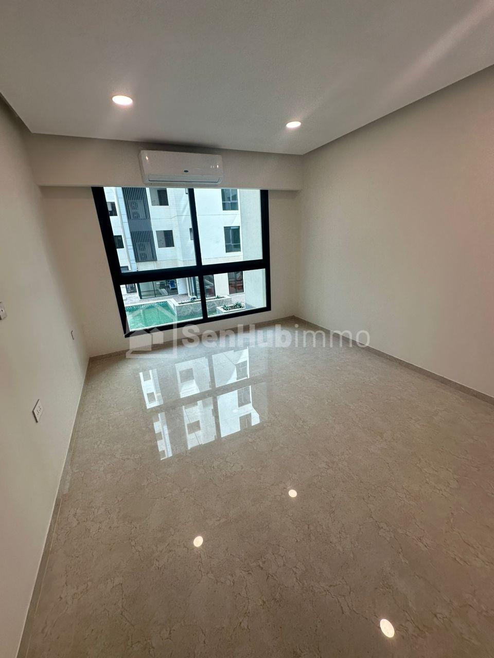 3 chambres avec salle d'eau chacune, un grand salon avec balcon en face de la mer, une belle cuisine moderne, un débarras, une buanderie, une chambre domestique avec salle d’eau, une toilette visiteurs. Toutes les pièces climatisées. Niveau: 4ème étage.