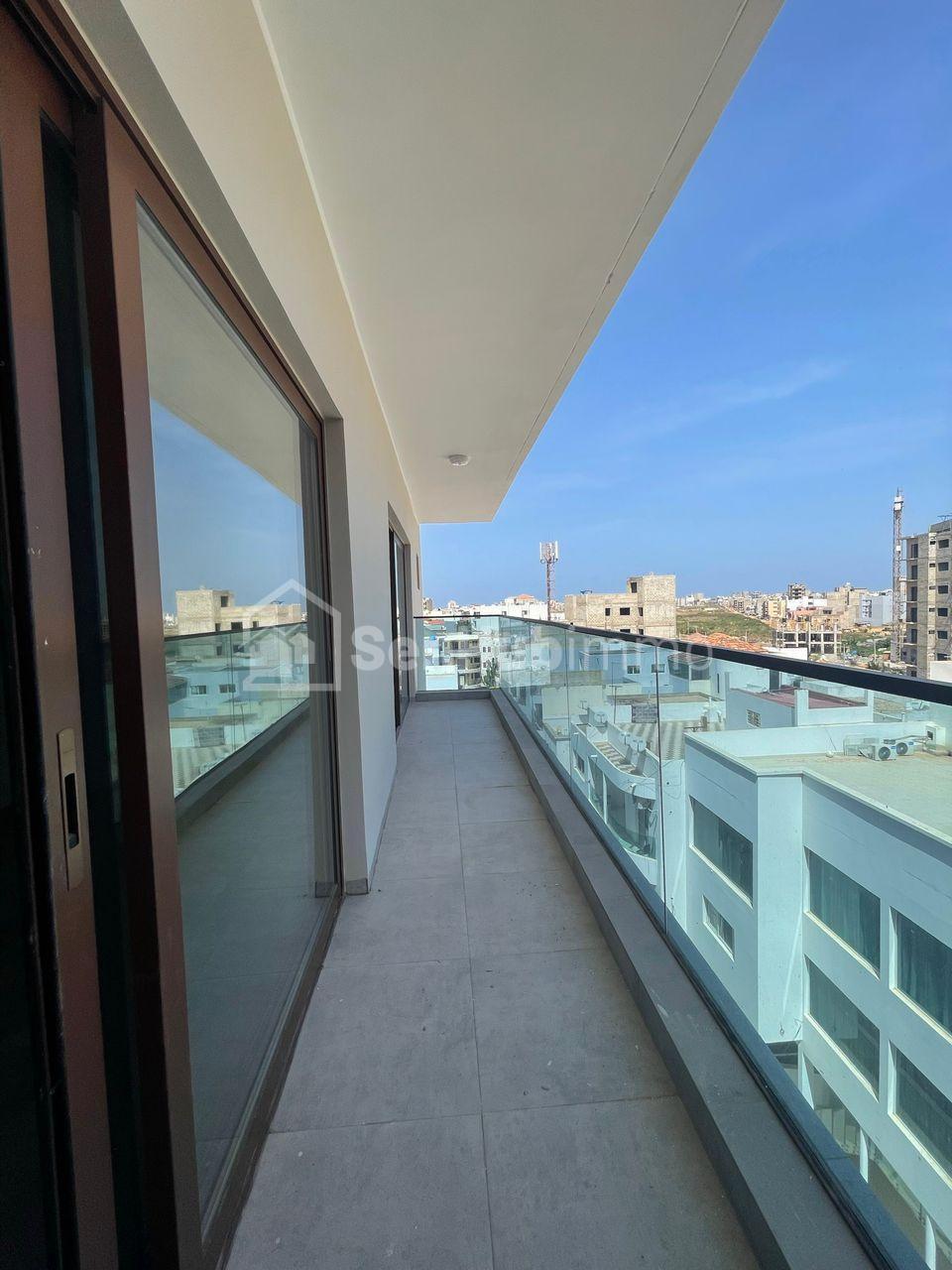 3 chambres avec salle d'eau, 1 salon avec balcon, 1 cuisine équipée avec rangement, 1 buanderie et 1e toilette visiteurs. Commodités: salle de sport, Ascenseur, groupe électrogène, réservoir d'eau, parking, sécurité 24h/24 Dans une zone calme et accessible, dans les Almadies