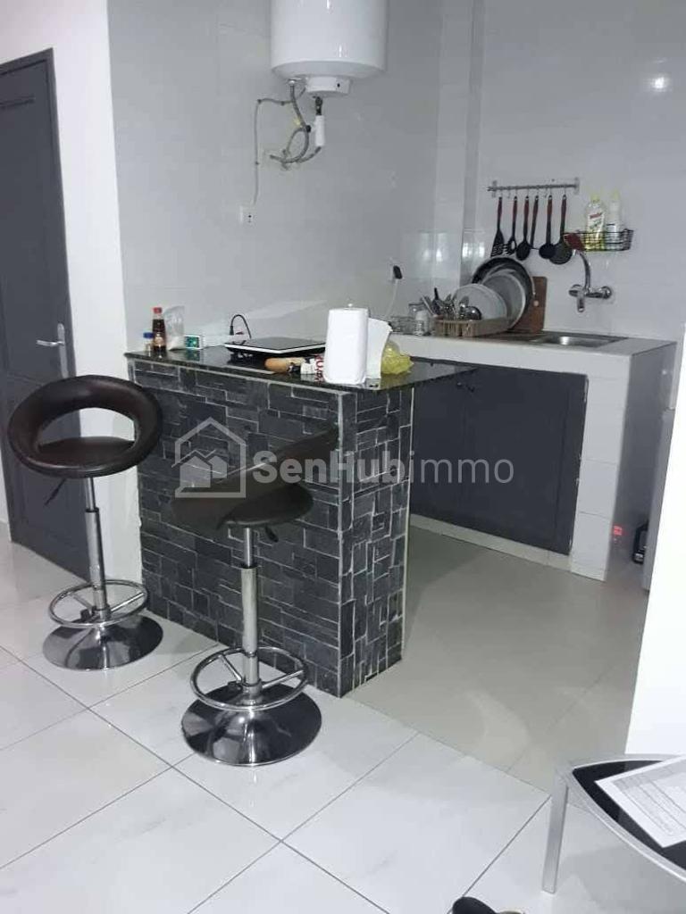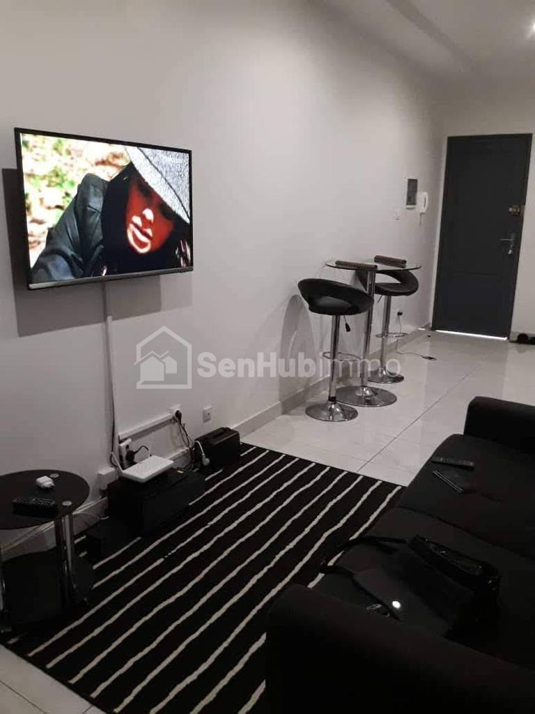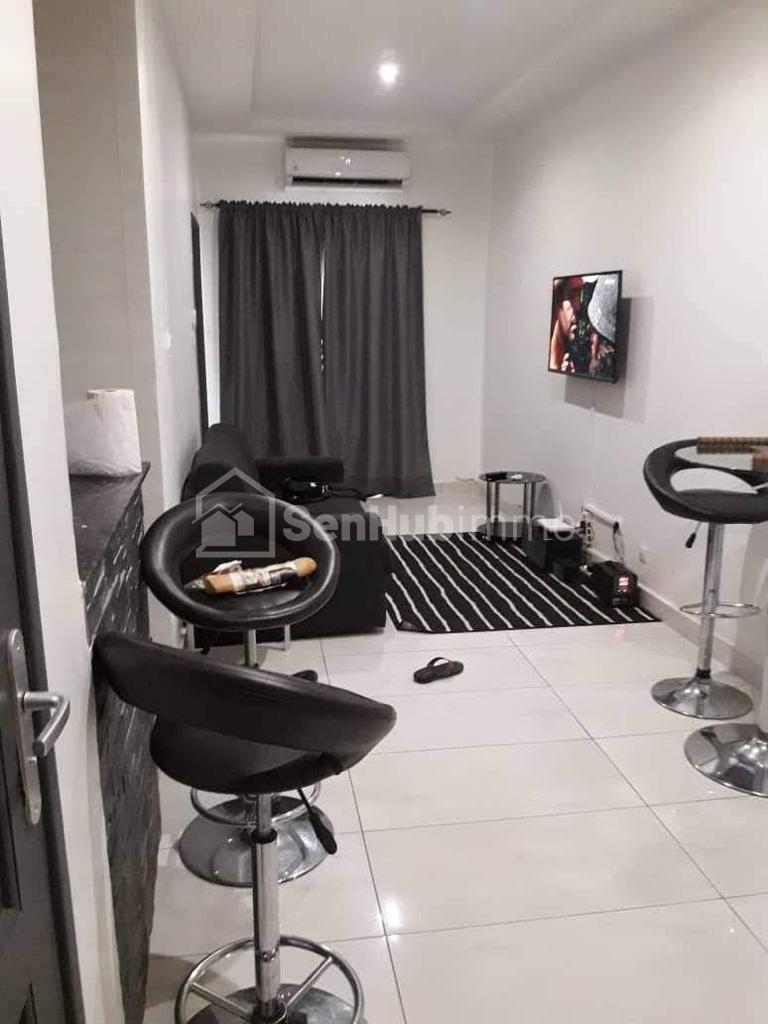 Annonce de location meublée: Studio meublé sis à Mermoz Batrain au 2eme étage composé: 1 chambre avec salle de bain Salon Cuisine Américaine Toilette visiteur