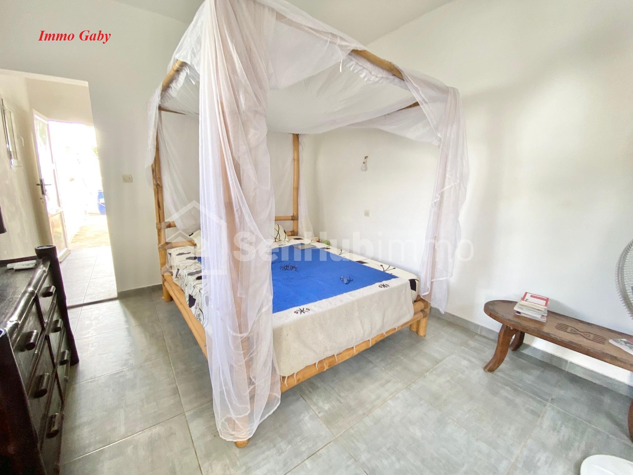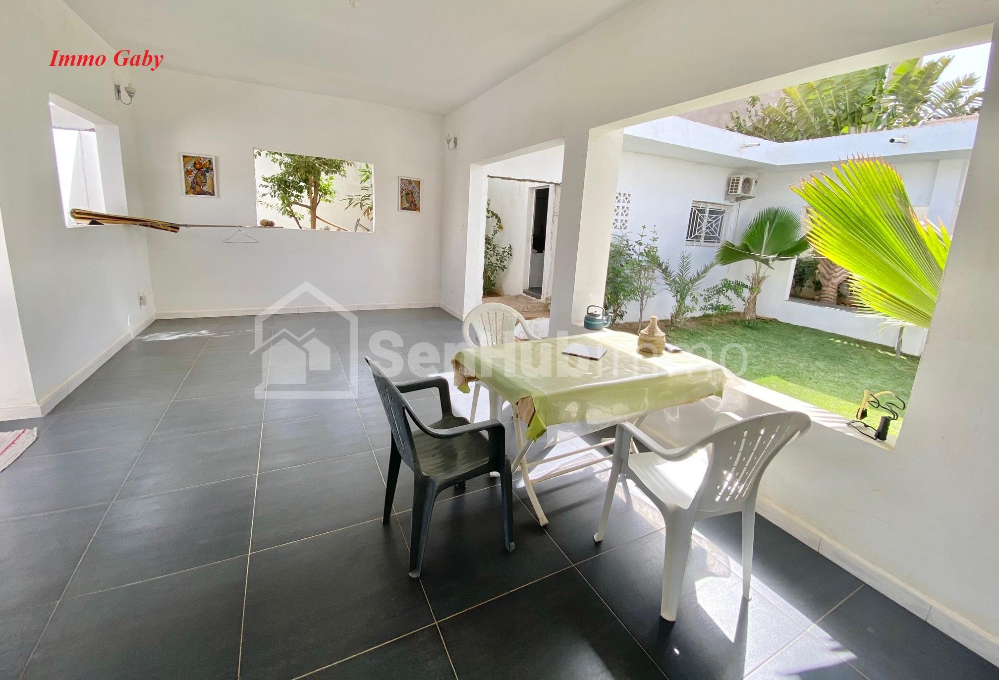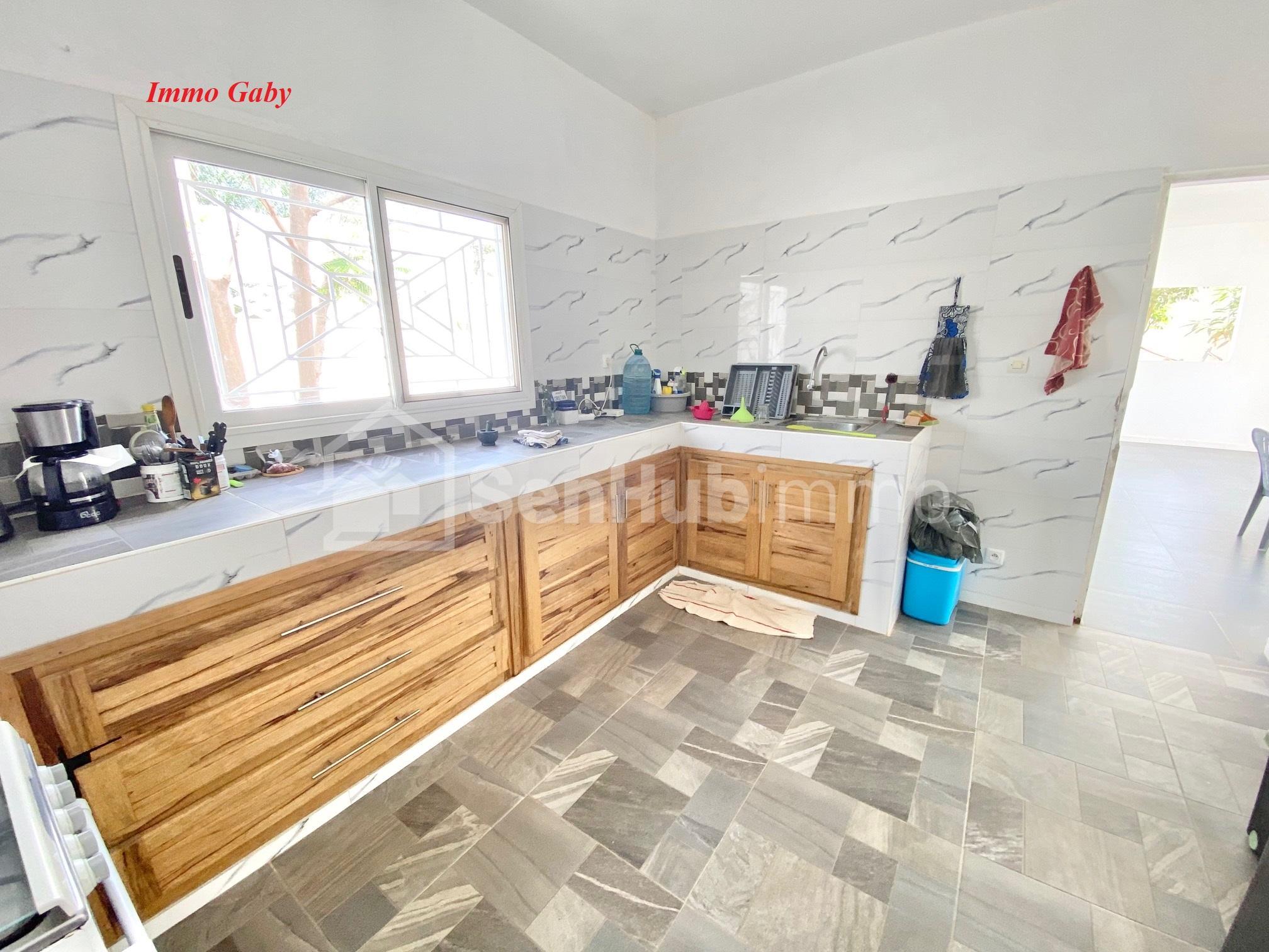 Quartier sécurisé à proximité de l'école de Foot Diambars. 3 Chambres (dont 1 extérieur et 1 petite chambre). 3 Salles d'eau, cuisine fermée, salle à manger ouverte sur le jardin, salon, puits. Possibilité de faire un étage.