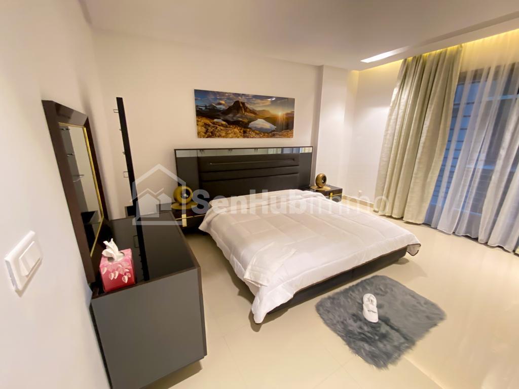 Appartement 2 chambres salon dans un immeuble avec ascenseur, groupe électrogène, parking sous sol, wifi, eau chaude, gardiennage h24 a la cité Keur gorgui 75.000f / jours