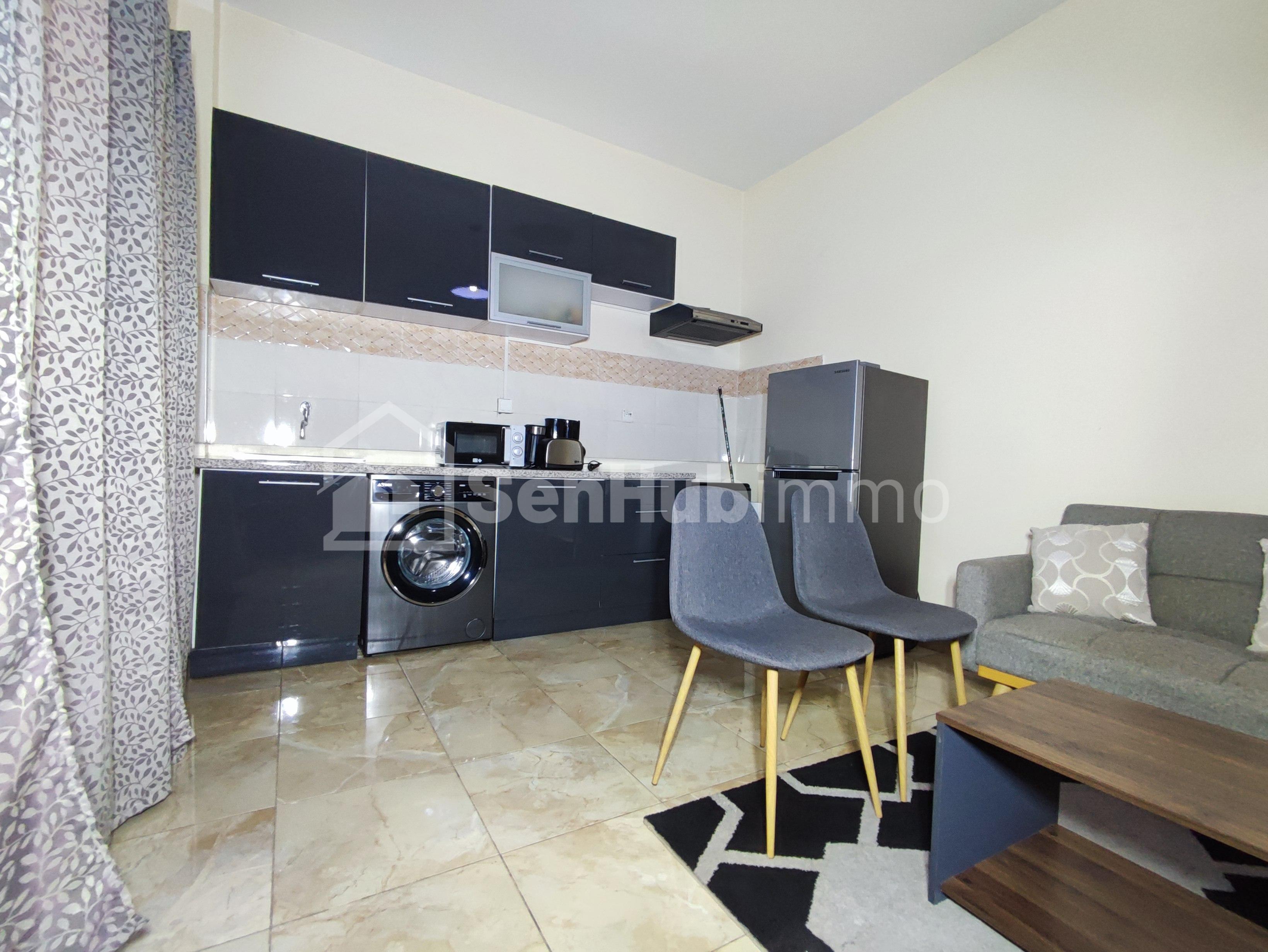 Profitez d’un séjour paisible et pratique à Sacré-Cœur 3 VDN Extension, à deux pas de la clinique Medickane et de la Cité Keur Gorgui. Ce studio meublé comprend 1 chambre, un salon avec kitchenette, une salle de bain, le tout dans un cadre calme, sécurisé et facile d’accès. Gardiennage wifi haut débit, Ménage inclus, Canal+ électricité non inclus